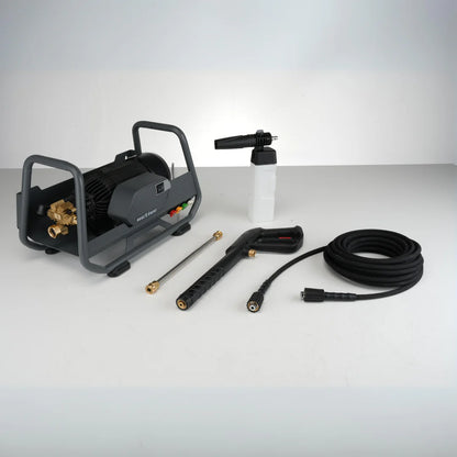The 2.3 comes equipped with an updated brass endplate 5-Piston Pro Pump and a 128 Induction motor, which gives you 2.3 GPM at 1100 PSI. The combined operating output of 2,500 cleaning units will make any cleaning task a breeze. Seriously this machine packs a punch, and it's both serviceable and rebuildable!